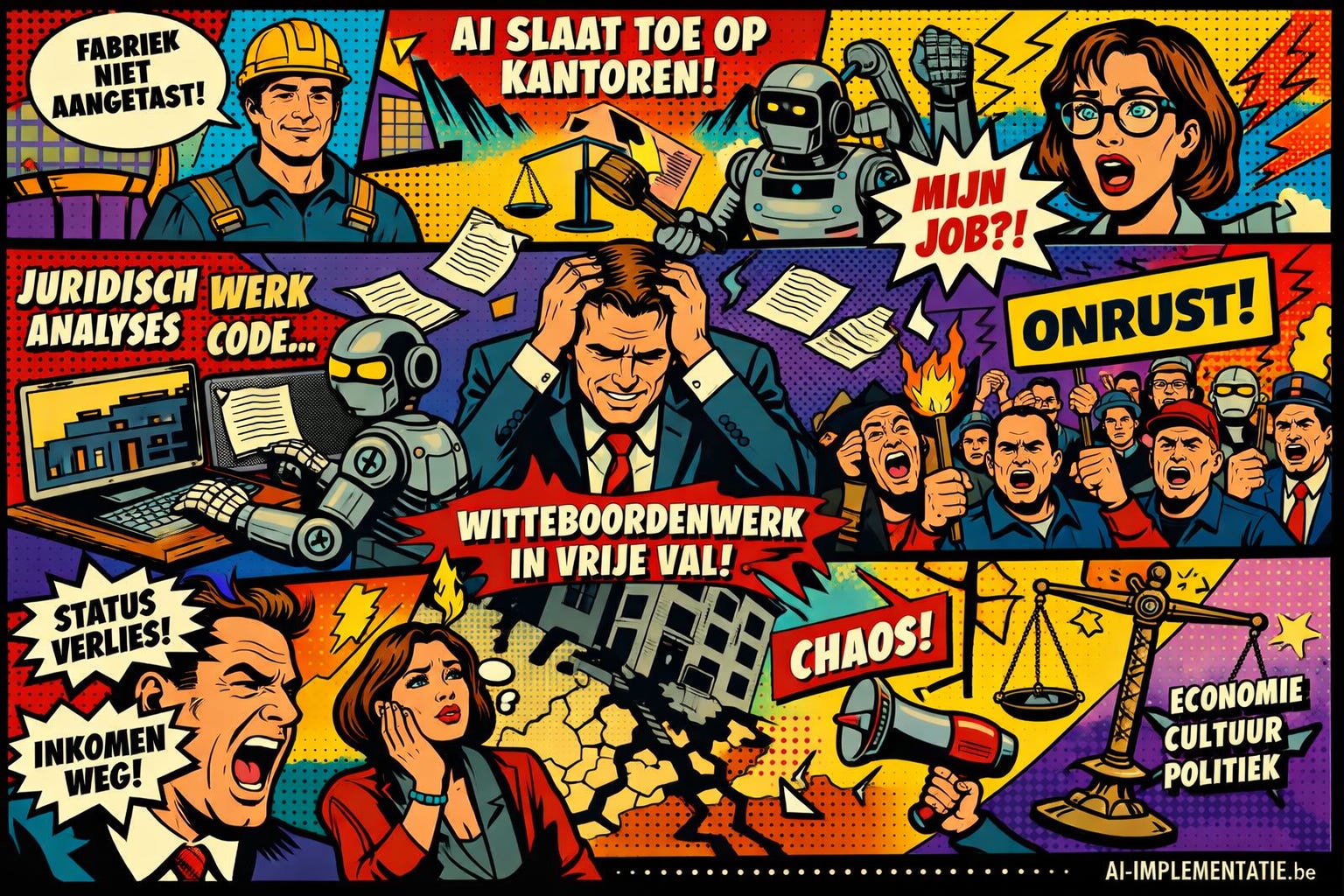 Artificiële intelligentie wordt vaak voorgesteld als een slimme assistent die vooral tijdswinst oplevert. Maar onder dat geruststellende beeld schuilt een veel hardere realiteit. De eerste zware gevolgen van AI zouden wel eens niet zichtbaar kunnen worden in klassieke handarbeid, maar in een groot deel van het witteboordenwerk. Daardoor dreigt de impact niet alleen economisch, maar ook sociaal en politiek bijzonder diep te snijden.