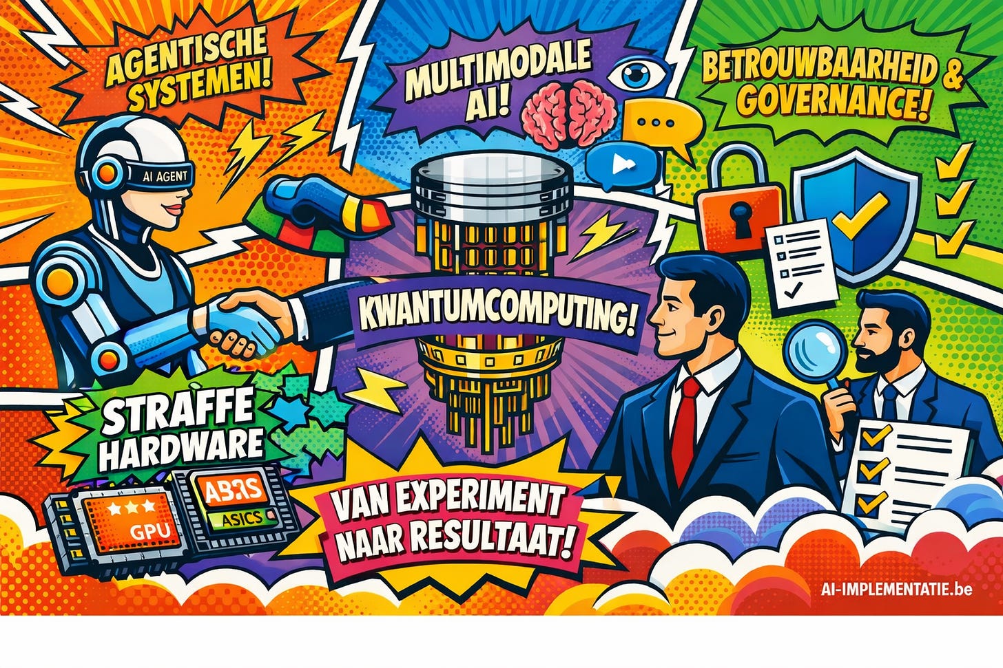 Bedrijven en overheden laten de experimentele fase achter zich en zetten vol in op schaalbare, betrouwbare en rendabele AI-toepassingen. Agentische systemen, efficiëntere hardware, multimodale modellen en strengere governance-structuren vormen samen de bouwstenen van een nieuw technologisch tijdperk waarin waardecreatie centraal staat.