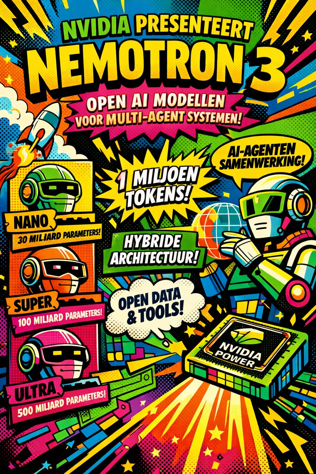 Nemotron 3 Ultra: de grootste uitvoering (~500 miljard parameters) bedoeld voor diepgaande, complexe redeneringstaken en grootschalige agent-ecosystemen.