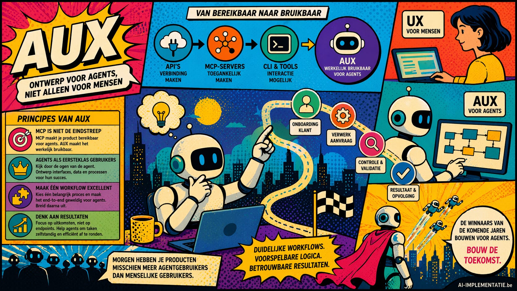 Die systemen hebben weinig aan visuele finesse. Ze hebben nood aan duidelijke workflows, voorspelbare logica en interfaces die optimaal werken voor geautomatiseerde actie in plaats van menselijke bediening. In dat kader wint AUX, of Agent User Experience, snel aan belang.